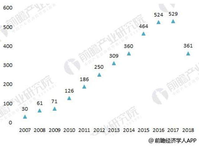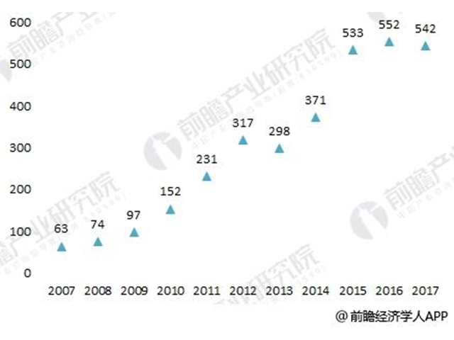 圖表3:2007-2017年低壓配電柜行業(yè)相關(guān)專(zhuān)利申請(qǐng)數(shù)量變化圖(單位:項(xiàng))