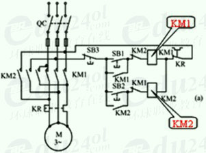 電動機便反轉。同時,串接在正轉控制電路中的常閉觸頭KM2斷開,起聯鎖保護作用。