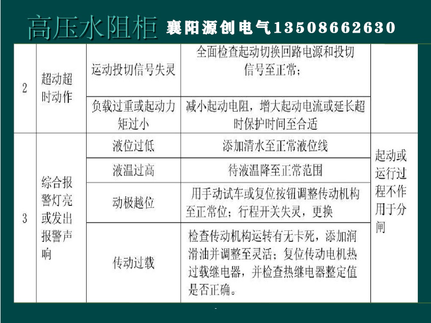 水阻柜廠家,液阻柜生產廠家,高壓液阻起動柜廠家說高壓水阻柜常見故障及處理方法: