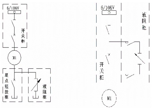 高壓軟啟動(dòng)柜對于電機(jī)降壓限流起動(dòng),這里用液體電阻與串分級切換阻抗作對比定性分析。